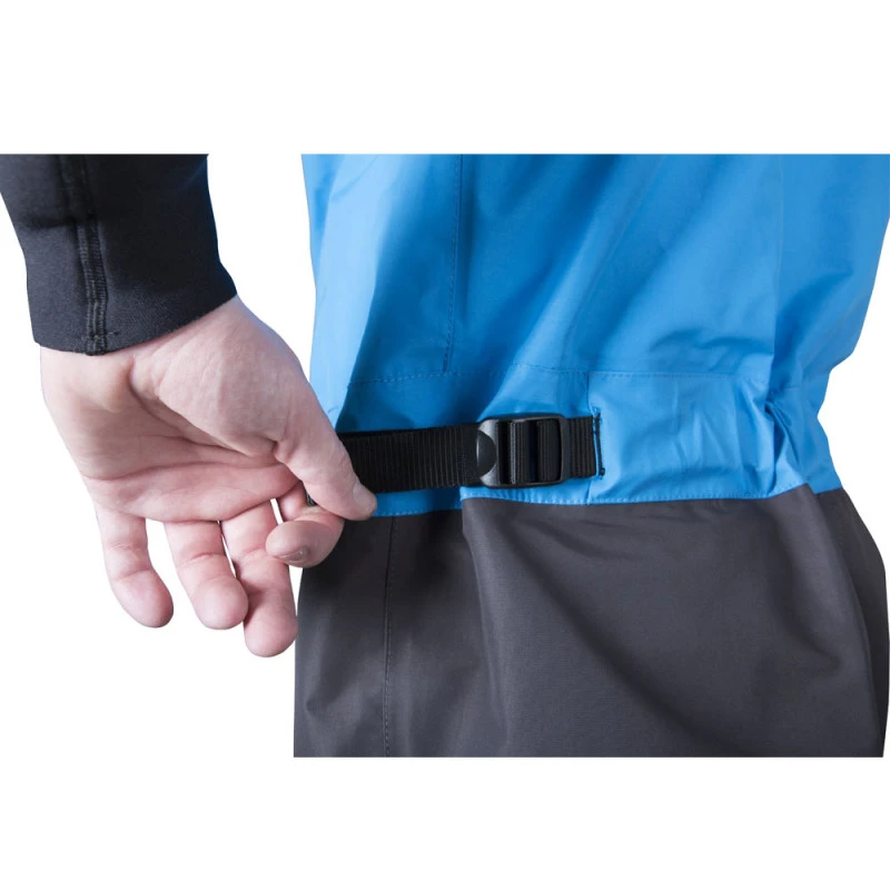Le Tissu est le très respirant, finitions cou néoprène et poignets latex avec recouvrements en néoprène. Une ceinture réglable permet de serrer la taille.