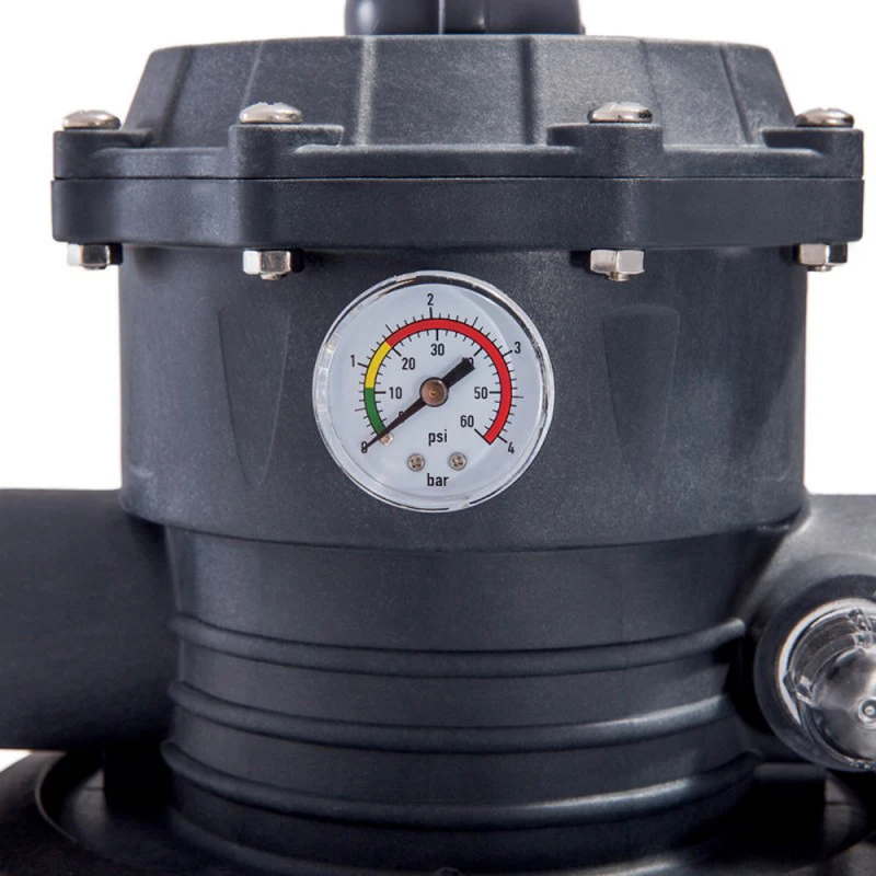 Ce filtre à sable ou verre filtrant pour les piscines de volume compris entre 36 et 56m3/h, demande peu entretien. Une fois branché, il filtre votre piscine tout seul, grâce à son programmateur et son panneau contrôle digital. Plus besoin de s’occuper de cette tâche, ce filtre reste autonome et filtre la piscine en éliminant les résidus. De plus, un manomètre vous informe l’état d’encrassement du filtre. Il vous manque plus qu’à choisir entre sable ou verre filtrant : Le sable se change seulement tous les 4 ans et le verre filtrant tous les 9 ans pour un confort supplémentaire. Pour ce filtre, il faut prévoir 35kg de sable ou 25kg de verre filtrant. Pour plus d’options, ce filtre à sable/verre comporte une vanne 6 voies afin de changer selon vos besoins le mode : filtration ,lavage, rinçage, égout, circulation, fermé.