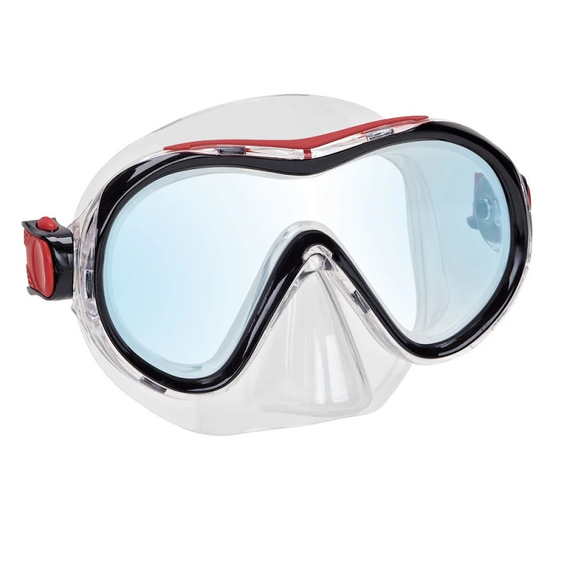 Le masque de plongée Bello Rouge de chez Imersion est doté d’un verre unique à large champ de vision. Sa jupe à lèvre en silicone laisse une sensation confortable sur la peau et ses boucles articulées permettent de régler facilement la sangle.