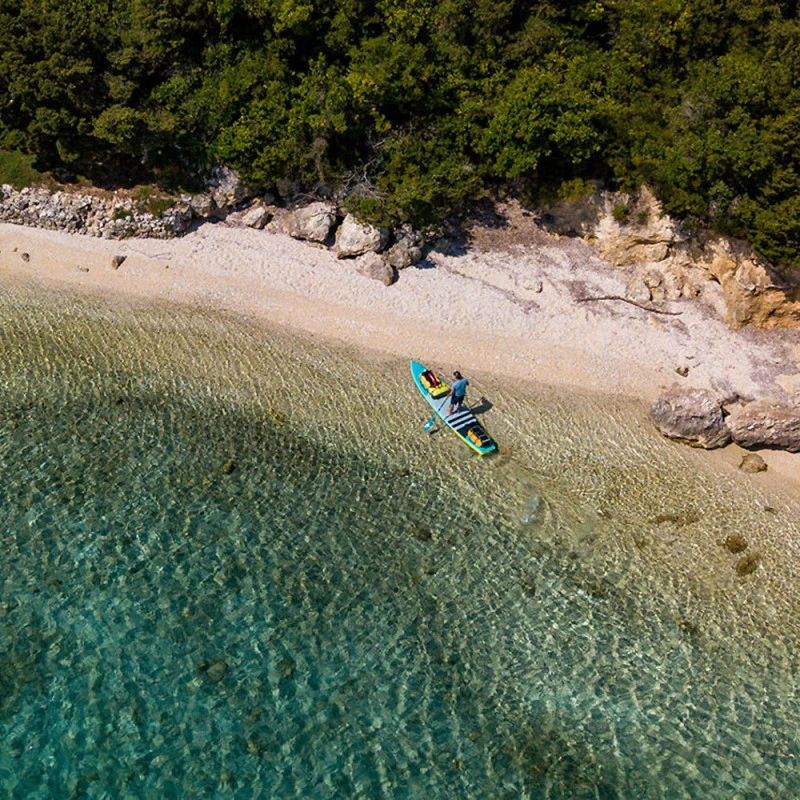 Le pack est proposé complet et prêt à naviguer, il ne vous reste plus qu’à vous jeter à l’eau ! Il est composé de : 1 planche + Pagaie + Leash + Double pompe action + Aileron + Sac de transport à roulettes