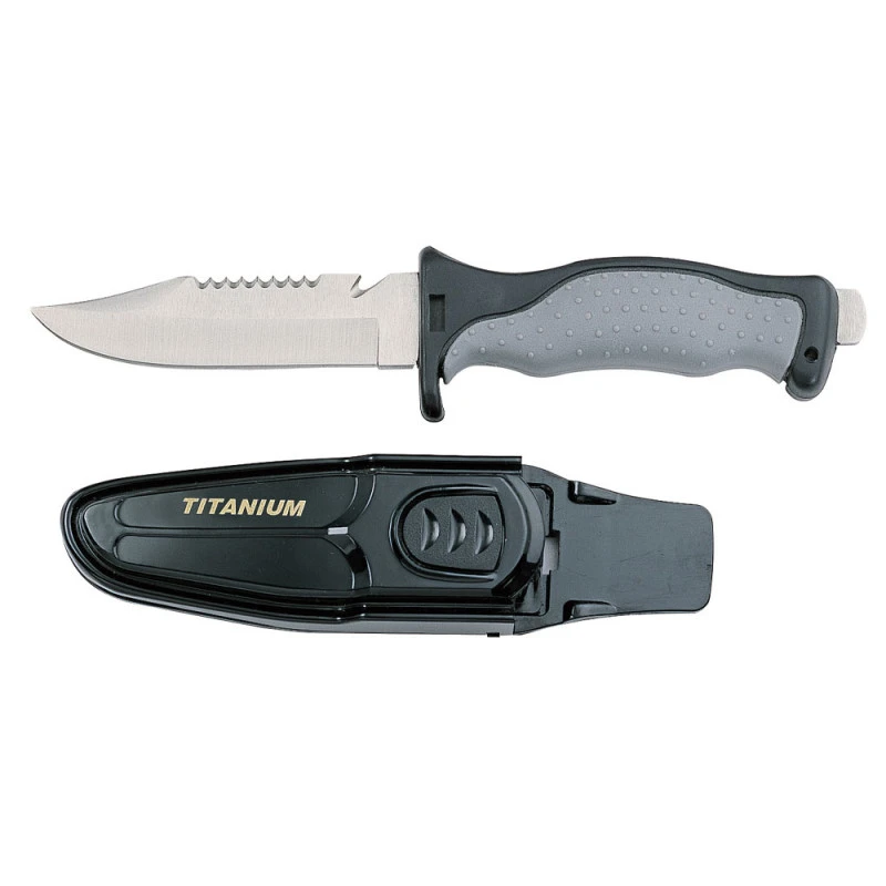 Ce poignard en titane est très facile d’utilisation et est très résistant grâce à sa composition en titane. Sa légèreté le rend indispensable à tous les plongeurs faisant de la chasse ou de la pêche sous marine.