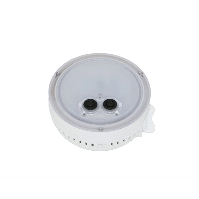 Eclairez votre spa gonflable avec cette lampe à LED multicolore pour prolonger votre baignade même la nuit. Créez une ambiance unique pour vous détendre. Ce spot s’illumine de 5 couleurs différentes : blanc, vert, turquoise, bleu et violet et vous pouvez choisir deux modes d’éclairage : – 1 couleur unique fixe au choix : blanc, vert, turquoise, bleu et violet – Ou alors un changement aléatoire : vert, turquoise, bleu et violet La lumière s’Interrompt automatique au bout de 2 heures pour ménager les piles AAA au nombre de 3 (non incluses avec le spot) Il se fixe aisément sur la buse de refoulement et peut ainsi s’adapter aussi bien sur un spa gonflable à bulles et/ou jets.