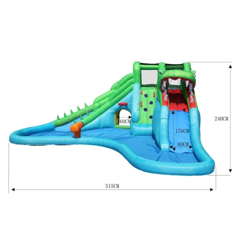 La structure dispose de 2 toboggans aquatique,, un mur d’escalade. Les enfants vont adorer.