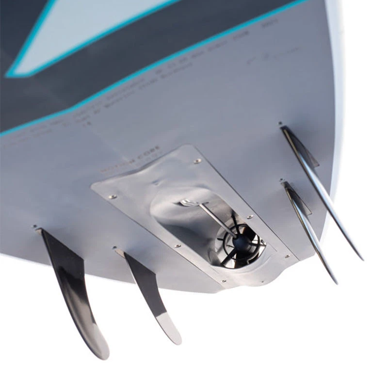 Cette planche de type mini-malibu de 8′, est dotée d’un noyau en EPS, d’une peau en fibre de verre avec de l’époxy laminé dans un moule en aluminium. Son shape très indulgent sera idéal pour débuter la pratique, et apprendre à sculpter vos premières vagues. La batterie Lithium 160 Wh délivrera une autonomie comprise entre 2 heures et 2,5 heures. Pour parfaire le tout, la planche est dotée d’une sécurité, qui permettra au propulseur de s’arrêter en cas de chute.