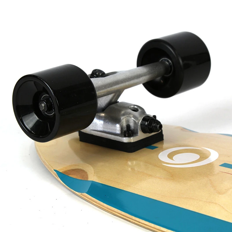 Grâce au truck équipé d’un ressort intégré, il n’y a pas besoin de pousser avec la jambe pour avancer, il suffit de pomper pour générer rapidement de la vitesse, sensations garanties ! L’avantage de ce type de truck est la reproduction similaire des mouvements faits en surf, pour des sensations de glisse douces et souples.