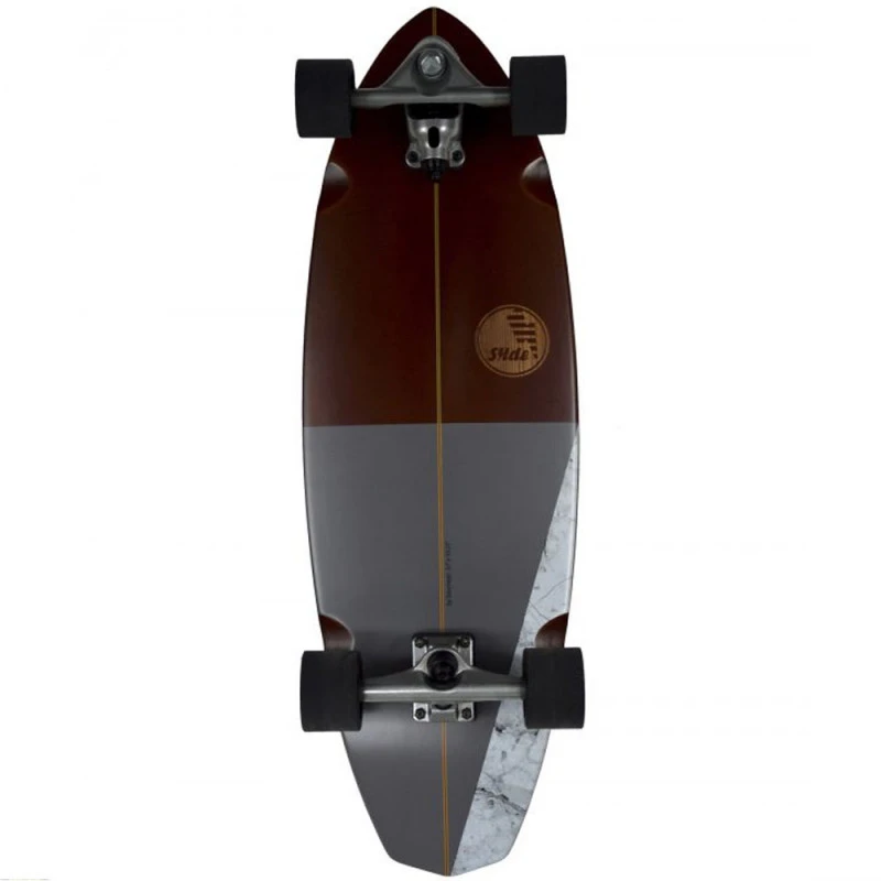 Le truck Slide situé à l’avant bouge lors de vos appuis et permet de rider ainsi sur le bitume comme sur un surf dans les vagues avec les mêmes sensations. Ce modèle a assez de raideur pour de la stabilité à haute vitesse et il est assez souple pour offrir un comportement loose à la board. Il permet des virages serrés, une installation facile et une solidité accrue.